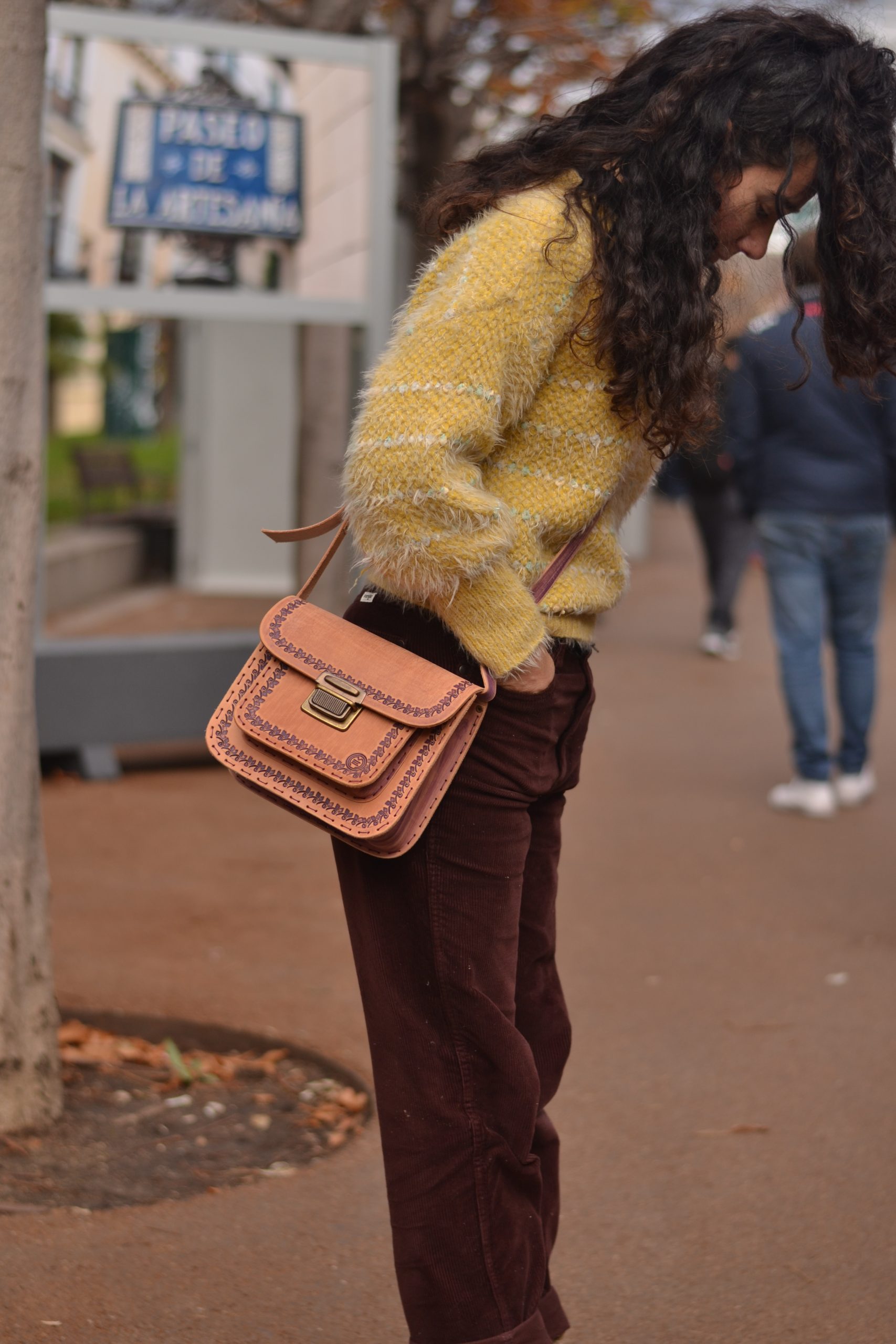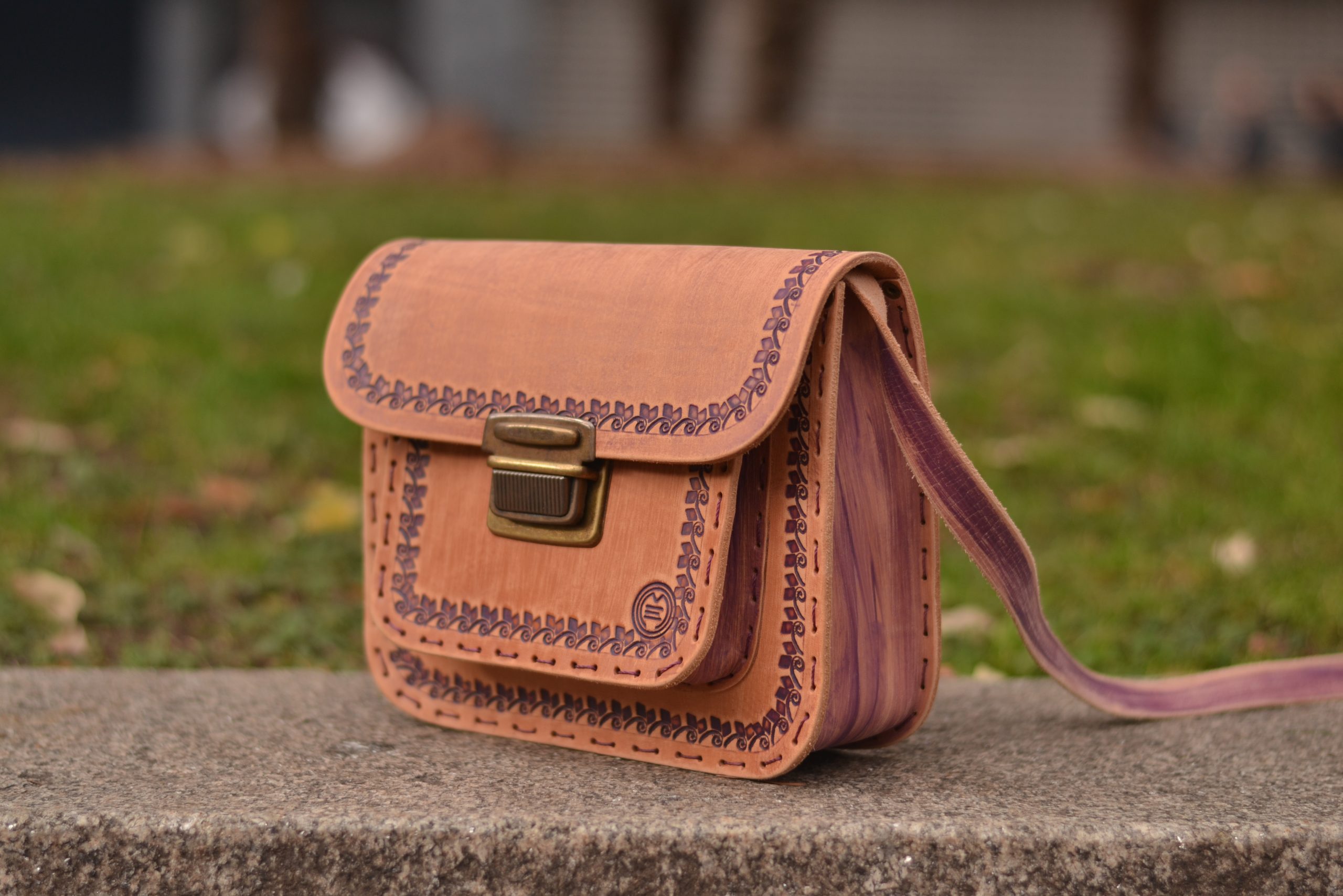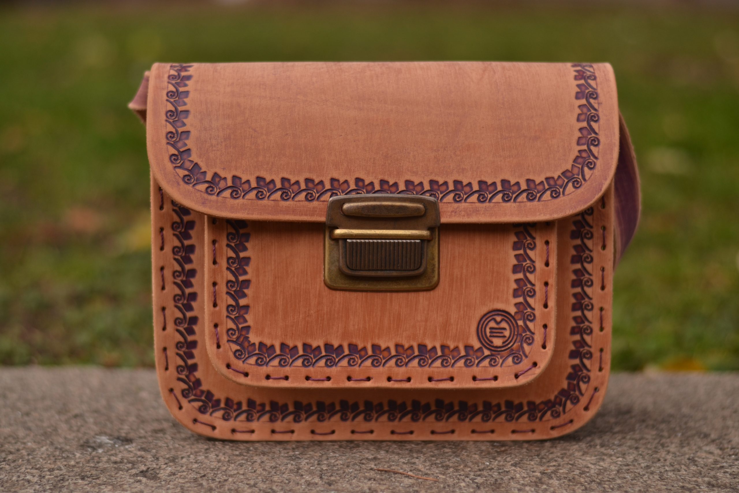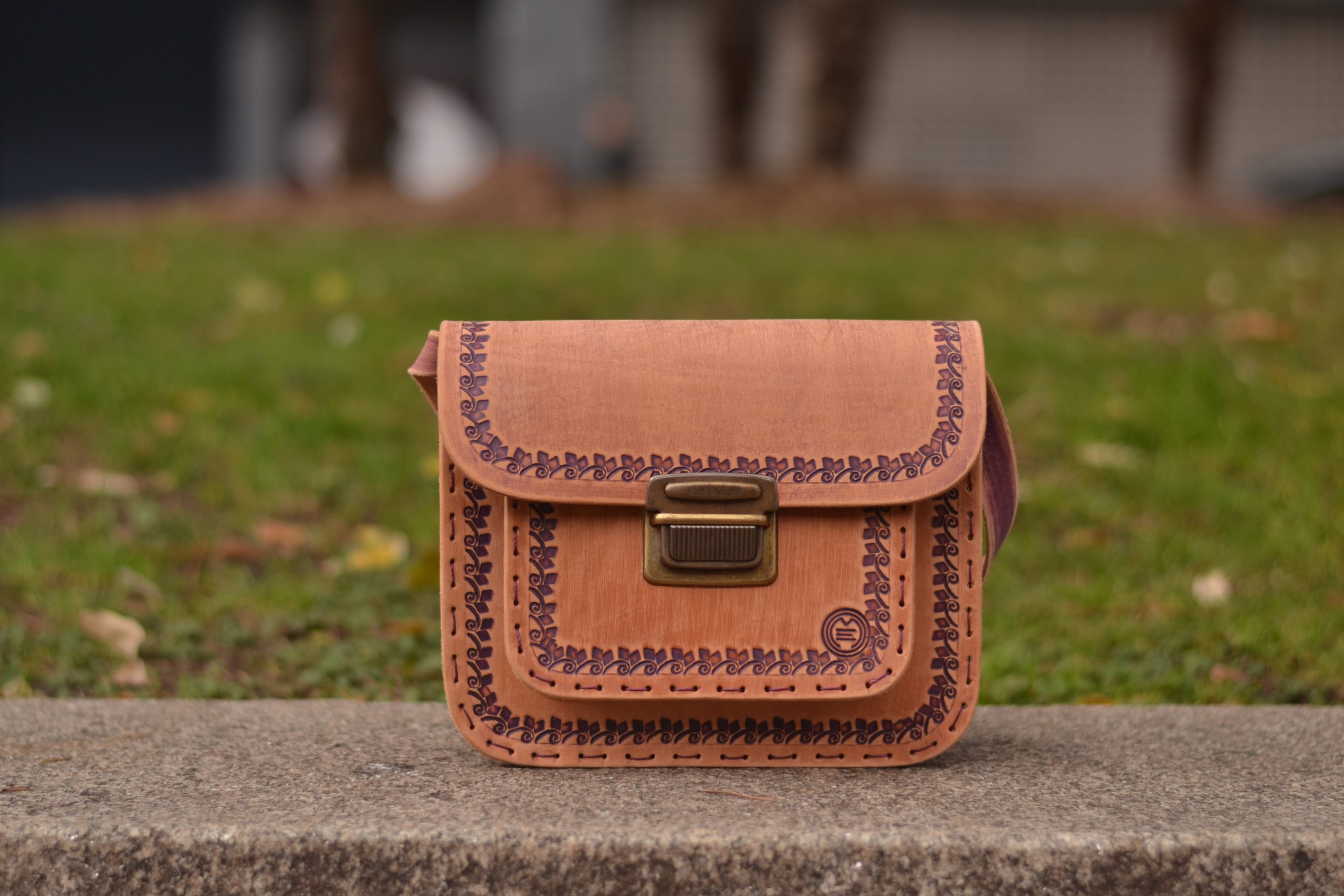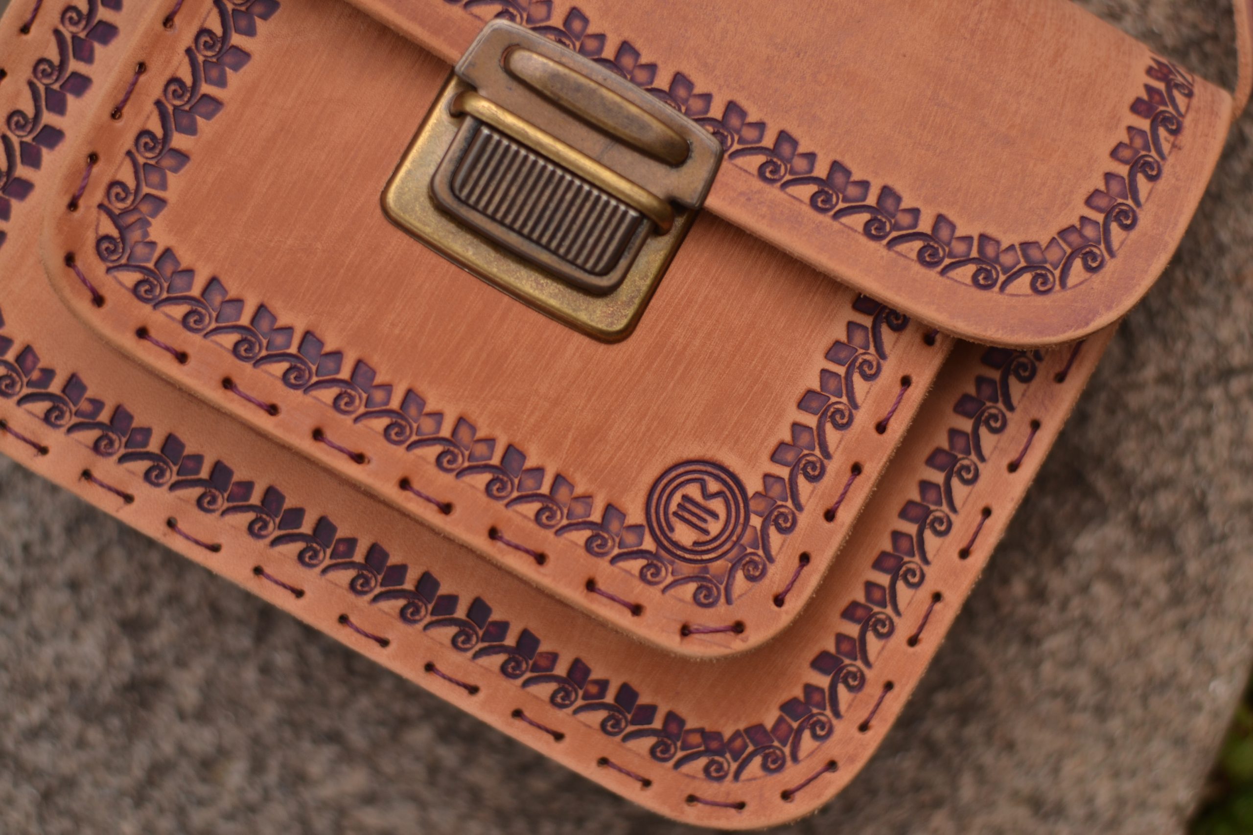 El Mini Maletin es una bandolera, simple, cómoda y original de cuero vacuno español; Es un modelo 100% artesanal; está cortada, cosida, cincelada y acabada a mano. Tiene un bolsillo frontal y correa regulable. Su Grabado es exclusivo, está hecho de forma improvisada y a mano. Creación artística única.